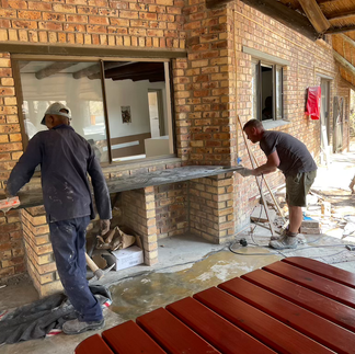 Wir verbringen beglückende, aufreibende und ermüdende Tage auf der Baustelle, die einem Bienenstock gleicht. Morgens, vor Bauleiter Shadrack mit seinem Pickup voller Arbeiter ankommt, gehen wir in Ruhe durch die Baustelle und besprechen, was gut und was weniger gelungen ist und was getan oder verbessert werden muss. Von den Offerten bezahlen wir jeweils 75 % im Voraus, damit Material gekauft und die Arbeit begonnen werden kann, den Rest nach dem Abschluss der Aufgabe. Wenn Shadrack vor Ort ist, geht es voran, ist er auf einer der anderen Baustellen, wird geschlampt und die Pausen werden länger. Manchmal wird gefragt, wie wir es möchten oder wir geben schon vorher klare Anweisungen, ab und zu kommt es aber auch vor, dass gemacht wird, ohne vorher zu klären. So passiert es hin und wieder, dass eine Arbeit doppelt gemacht werden muss, etwa die Wände im Aussenbereich neu gestrichen, weil für uns die gewählte Farbe wie die Faust aufs Auge passt und wir damit nicht leben können. In den Badezimmern haben wir uns bewusst für den afrikanischen Stil entschieden, rohe Backsteinbauten mit hübschen, für uns handgefertigten Waschbecken und ein paar Zierfliesen mit Bushbabys. Wir sind schockiert, als wir eines Tages sehen, dass die Tierchen alles andere als schön und teilweise sogar auf dem Rücken liegend montiert sind. Auch hier, zurück an den Start. Bei unserem Bad muss der ganze Bau des Tresens noch einmal von vorne begonnen werden, da er einfach weder am richtigen Ort steht, noch schön gebaut ist. So erleben wir einiges an Auf und Ab.